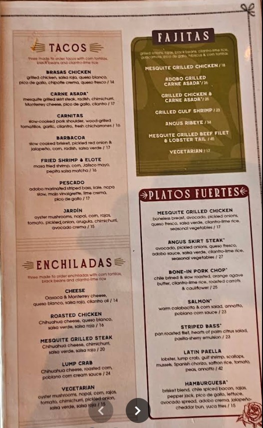 Been here multiple times and always love the ambience, food and service (except maybe 1-2 times). Go to order is tacos (chicken, fish or jardin). Margarita flight and other cocktails are great as well. The overlook at 2nd floor is good/great on cool/moderate weather days.