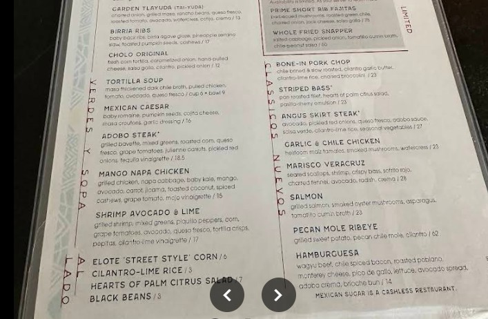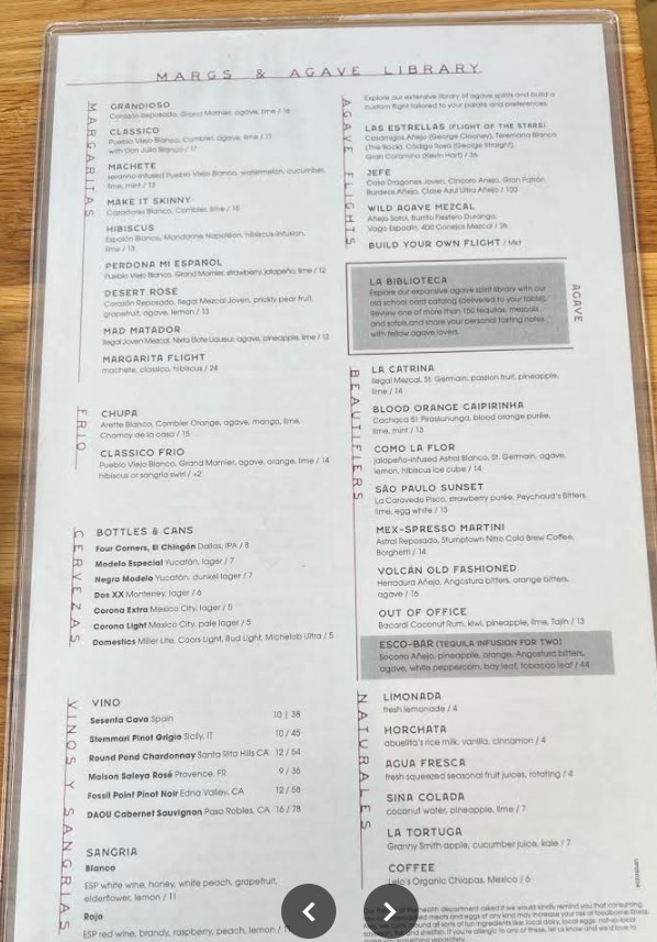 First of all, Leslie and Esme were lovely, friendly, and informative servers. Second, can we talk about the atmosphere? It is in such a beautiful part of town. This is where you go to have some delicious food and unwind. And finally, one of my favorite things to do is treat myself on my one day off a week from two jobs, at a place that feels good, has friendly service, and has colorful food with bright flavors. And the happy hour, hello, from 2 to 6 PM you can get all kinds of drinks for only seven dollars. What? I had a hibiscus frozen margarita, then I tried the mango one, I got chips and queso blanco, and this beautiful, bright citrusy sea bass. I’m coming back and I’m bringing friends. Edit: OK I couldn’t resist and I stayed to get the freshly deep-fried churros with three dipping sauces. Good Lord. Edit2: And one more margarita because it’s still happy hour. Sangria swirl baby. So my bill estimate will be a little bit higher because I ordered all the extra things including a slice of chocolate cake to go for my best friend who just became an uncle yesterday. Otherwise I could’ve gotten out of here easily for around $50 including tip.